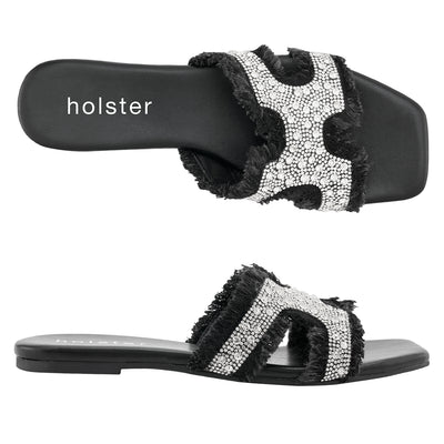 Regular price $109.99Slide into laid-back luxury with Vibe. From sandy sunsets to moonlit strolls, this chic slide brings effortless glamour to coastal nights. Soft frayed edges, a hint of jewel shine, and easy comfort make it perfect for slipping on as the boardwalk lights up and the evening breeze rolls in.